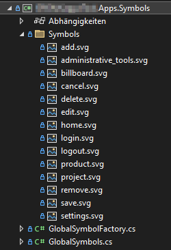 Ensure you add this to the project file. This will mark all SVG files within the Symbols folder as embedded resource.